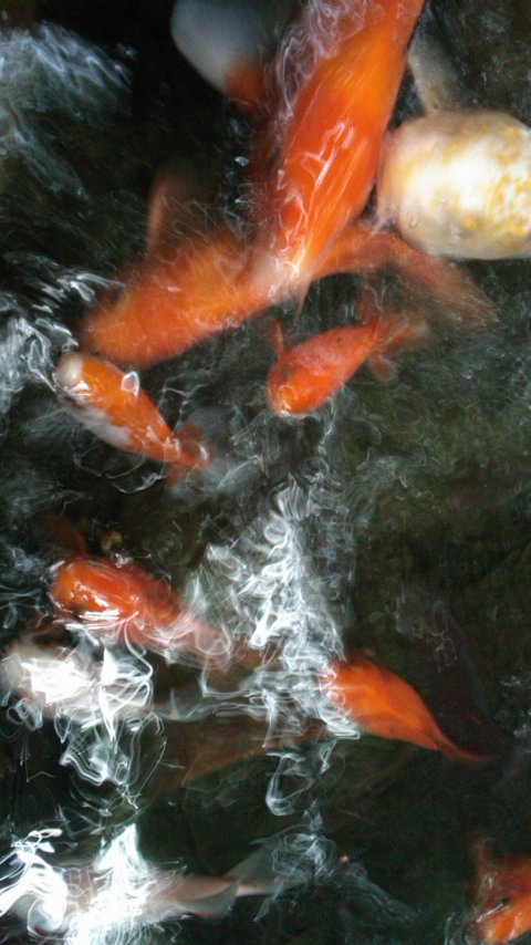 立ち寄った茶屋の横にある池の鯉でした。