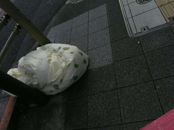 昼を食い終わって帰社途中になぜか布団が!