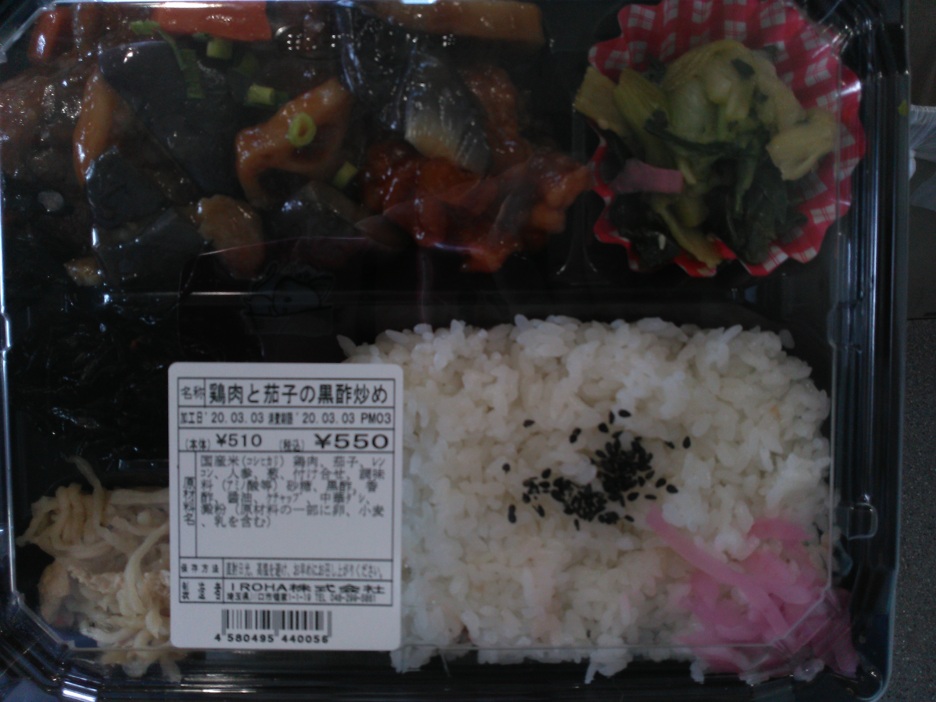 (鶏肉と茄子の黒酢炒め弁当550円含む)